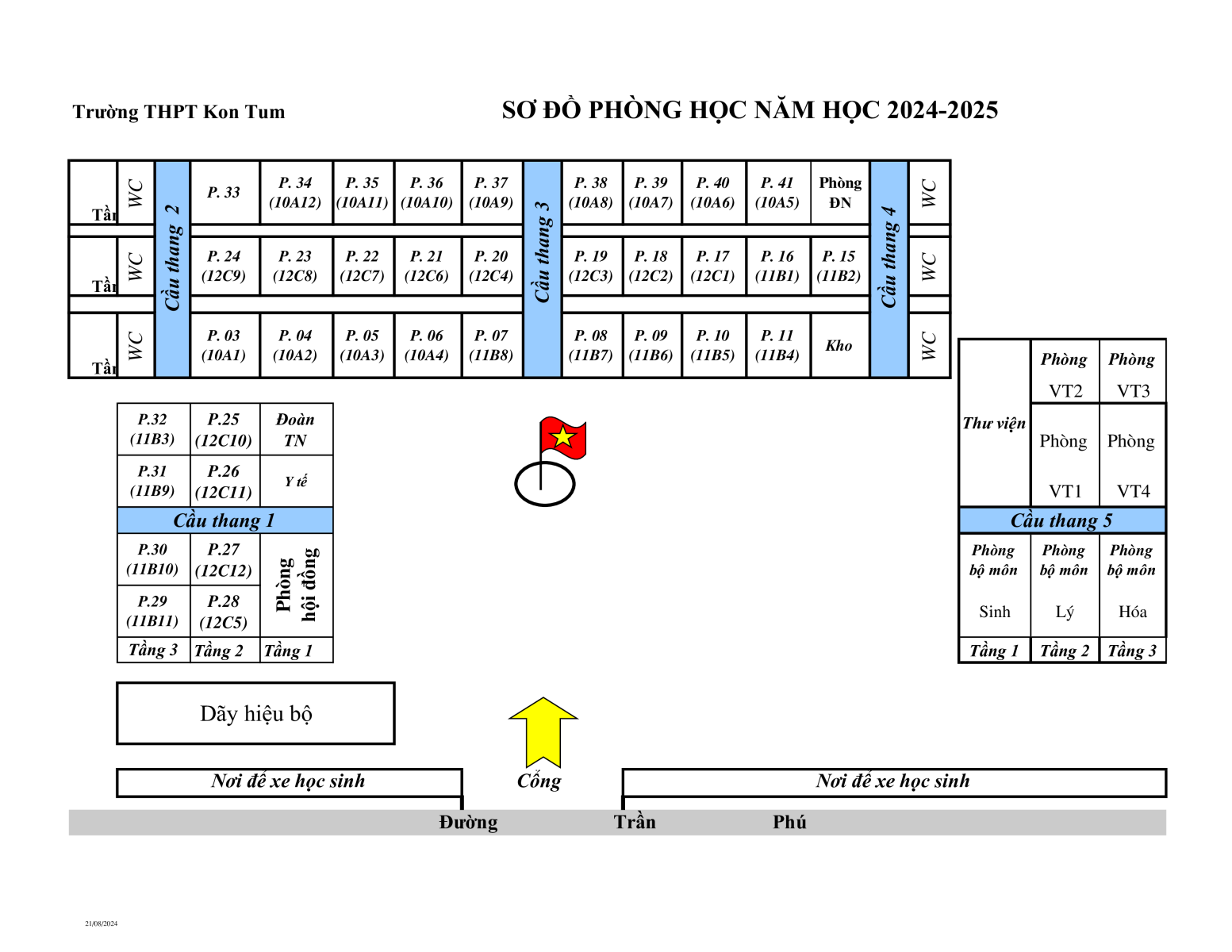 Trường THPT Kon Tum thông báo sơ đồ phòng học sử dụng trong năm học 2024 - 2025 như sau: